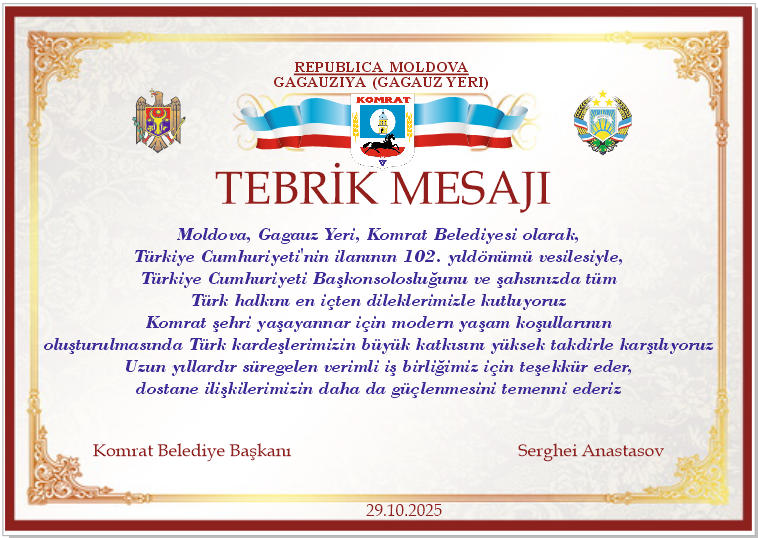 Türkiye Cumhuriyeti 102 yaşında(Tebrik mesaji)