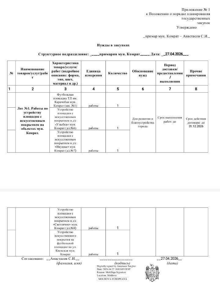 Дополнения в план госзакупок примэрии м.Комрат на 2026г(doc)